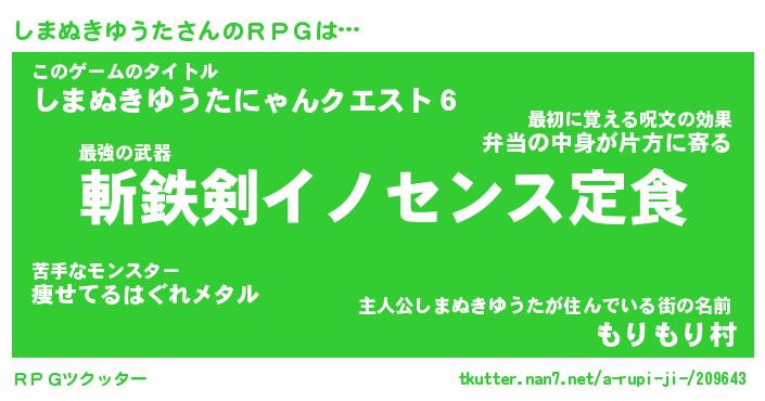 | 伝説のあだ名 | 『伝説のスナイパーしまぬきゆうた』 |