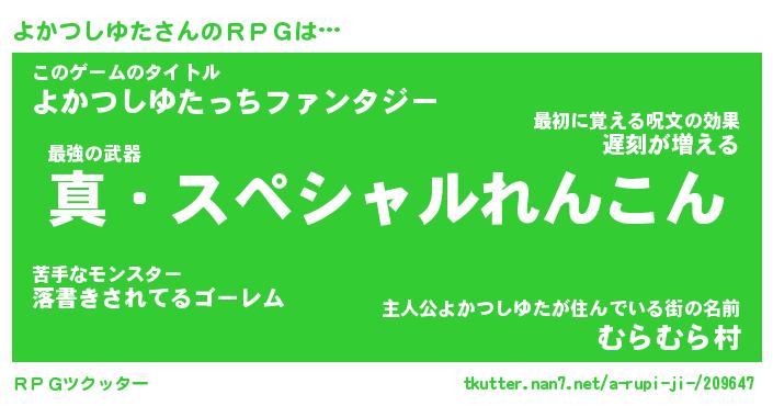 | 男性向けラノベタイトル風あだ名 | 『ヨカツシユタアートオンライン』 |