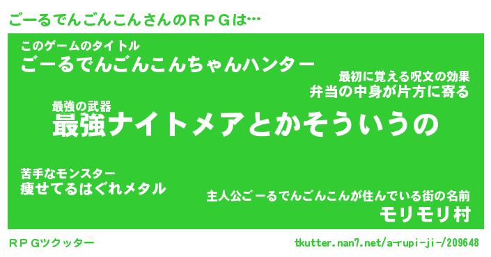 | 男性向けラノベタイトル風あだ名 | 『ゴールデンゴンコンアートオンライン』 |