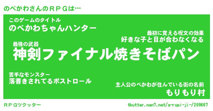 | 意味不明あだ名 | 『ペロリンのべかわ』『永久保存のべかわ』 |