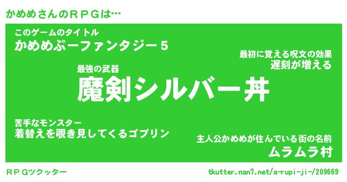 | ファンタジー風あだ名 | 『カメフェル』『エターナルカメメー』 |