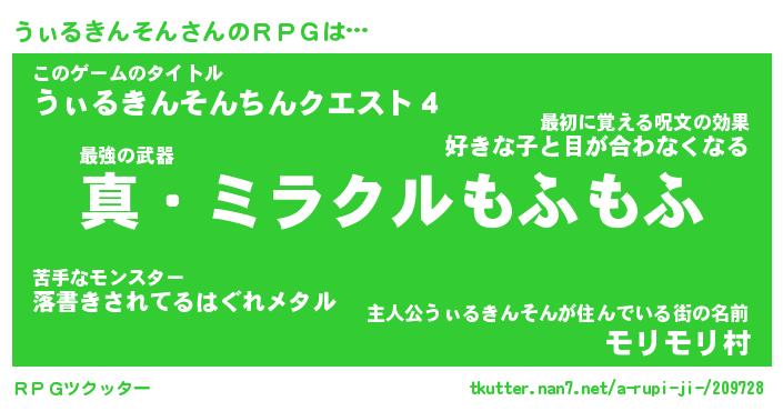 | 伝説のあだ名 | 『封印されし竜騎士うぃるきんそん』 |