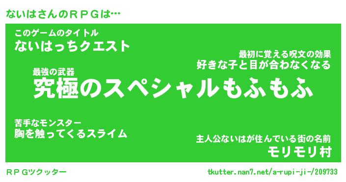 | ヘコむあだ名 | 『ないにー』『酢こんぶ』『ないっ子』 |