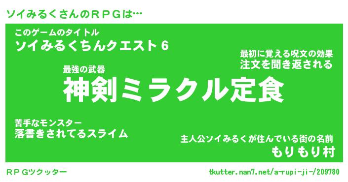 | 伝説のあだ名 | 『不死鳥の竜騎士ソイみるく』 |