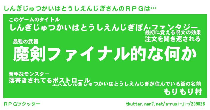 | 胡散臭い通販商品みたいなあだ名 | 『必ず成功するブレスレット…その名も「しんぎじゅつかいはとうしえんじぎ」』 |