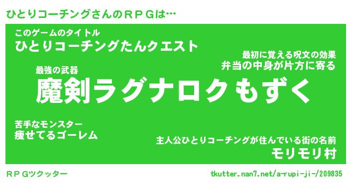 | 男性向けラノベタイトル風あだ名 | 『ひとりコーチングの憂鬱』 |