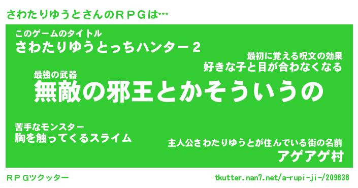 | 男性向けラノベタイトル風あだ名 | 『サワタリユウトアートオンライン』 |