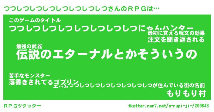 | 男性向けラノベタイトル風あだ名 | 『つつしつしつしつしつしつしつしつの憂鬱』 |