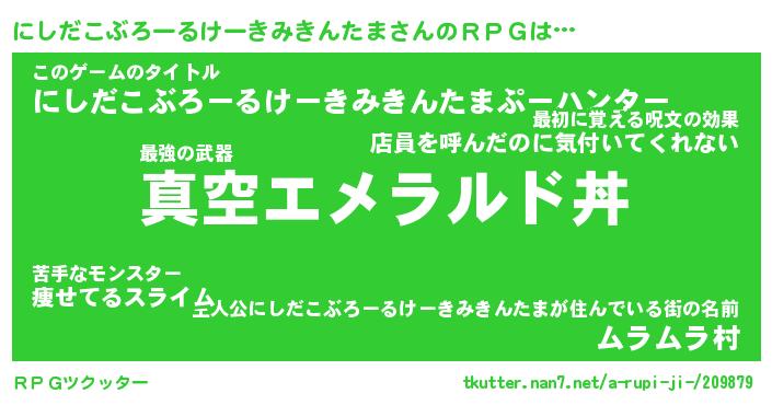 | 男性向けラノベタイトル風あだ名 | 『ニシダコブロールケーキミキンタマアートオンライン』 |
