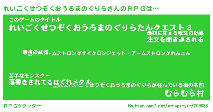 | ヒーロー風カッコイイあだ名 | 『スーパーレイゴクセツゾクオウロマノグリラ』 |