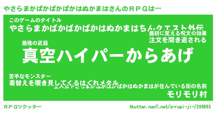 | 胡散臭い通販商品みたいなあだ名 | 『億万長者になれるブレスレット…その名も「やさらまかばかばかばかはぬかまは」』 |