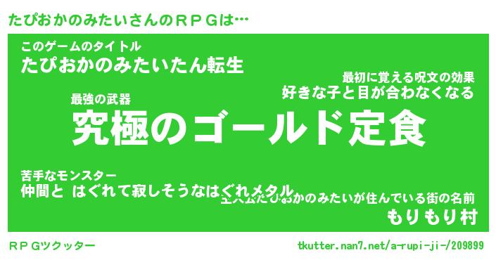 | 料理風あだ名 | 『節約★たぴおかのみたいと油揚げの玉子丼』 |