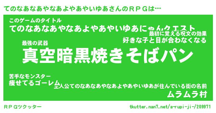 | 胡散臭い通販商品みたいなあだ名 | 『億万長者になれる水晶球…その名も「てのなあなあやなあよやあやいゆあ」』 |