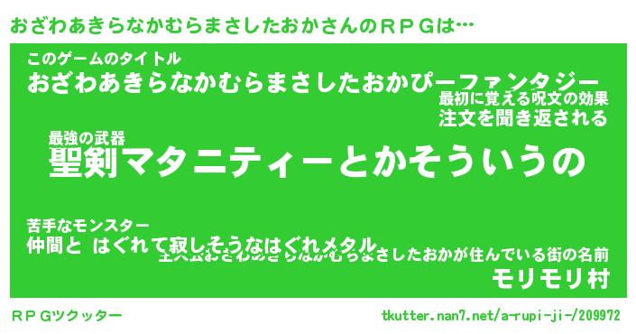 | 胡散臭い通販商品みたいなあだ名 | 『必ず成功する霊験あらたかなお札…その名も「おざわあきらなかむらまさしたおか」』 |