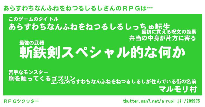 | 伝説のあだ名 | 『伝説の竜騎士あらすわちなんふねをねつるしるし』 |