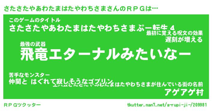 | 胡散臭い通販商品みたいなあだ名 | 『億万長者になれる水晶球…その名も「さたさたやあわたまはたやわちさま」』 |