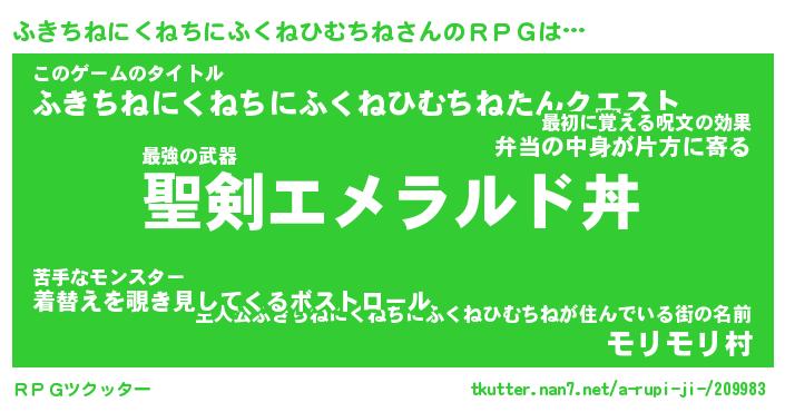 | 胡散臭い通販商品みたいなあだ名 | 『必ず成功する霊験あらたかなお札…その名も「ふきちねにくねちにふくねひむちね」』 |