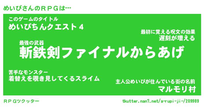 | 伝説のあだ名 | 『伝説の傭兵めいぴ』『最古の忍者めいぴ』 |
