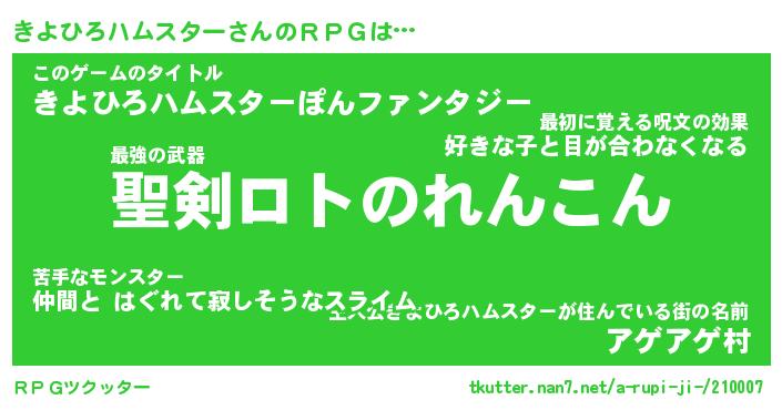 | 伝説のあだ名 | 『伝説の竜騎士きよひろハムスター』 |