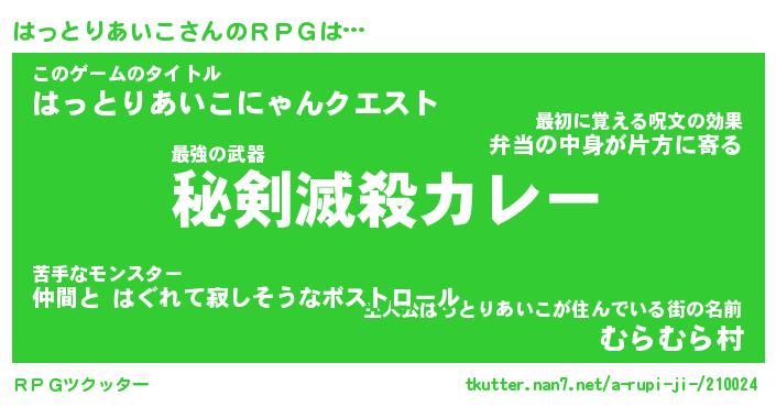 | 胡散臭い通販商品みたいなあだ名 | 『必ず成功する霊験あらたかなお札…その名も「はっとりあいこ」』 |