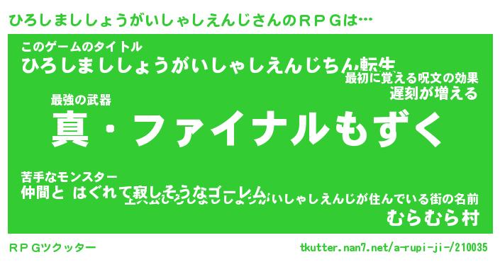 | 男性向けラノベタイトル風あだ名 | 『ヒロシマシショウガイシャシエンジアートオンライン』 |