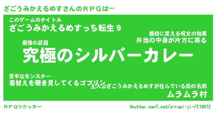 | 男性向けラノベタイトル風あだ名 | 『ザゴウミカエルメスアートオンライン』 |