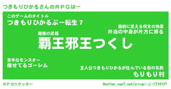 | 男性向けラノベタイトル風あだ名 | 『ツキモリヒカルアートオンライン』 |