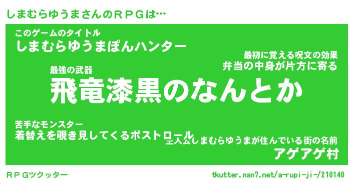 | 男性向けラノベタイトル風あだ名 | 『シマムラユウマアートオンライン』 |
