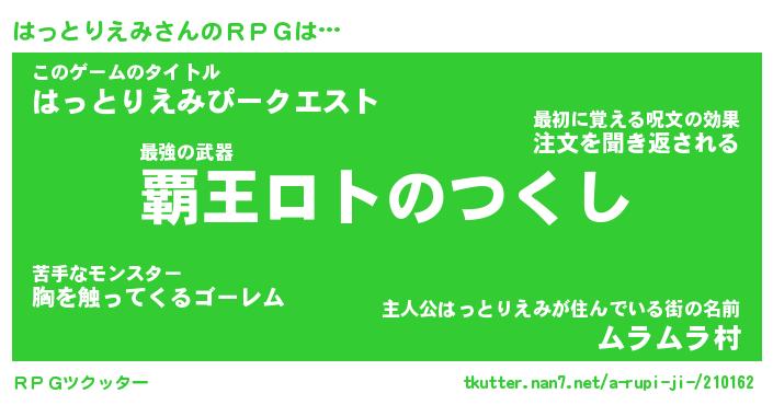 | 伝説のあだ名 | 『封印されし竜騎士はっとりえみ』 |