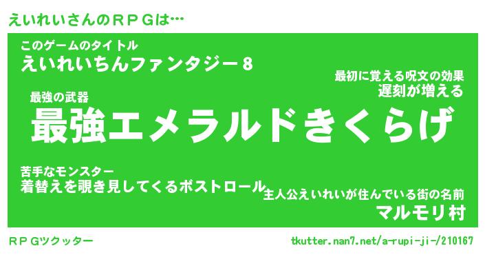 | ヘコむあだ名 | 『えいっふぃ~』『なまこ酢』 |