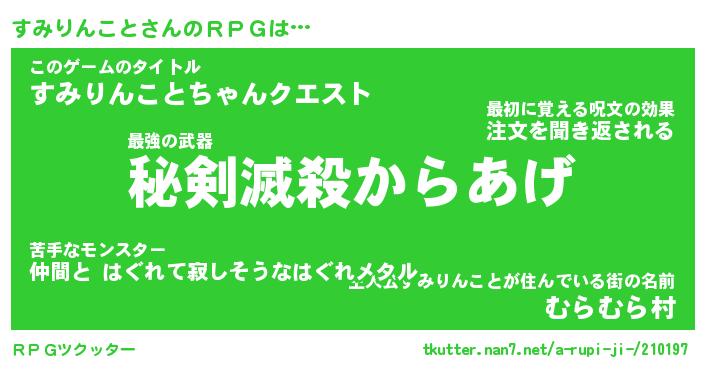 | 男性向けラノベタイトル風あだ名 | 『すみりんことの憂鬱』 |