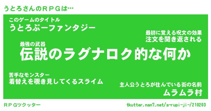 | 男性向けラノベタイトル風あだ名 | 『うとろの憂鬱』 |