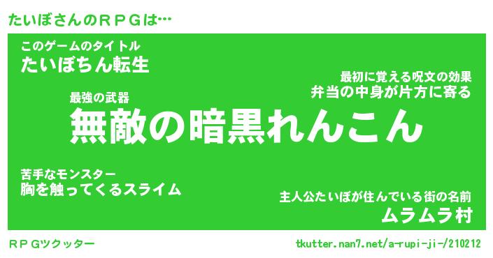 | 男性向けラノベタイトル風あだ名 | 『タイボアートオンライン』 |