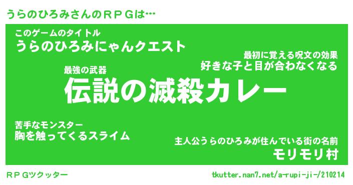 | 料理風あだ名 | 『節約★うらのひろみと油揚げの玉子丼』 |