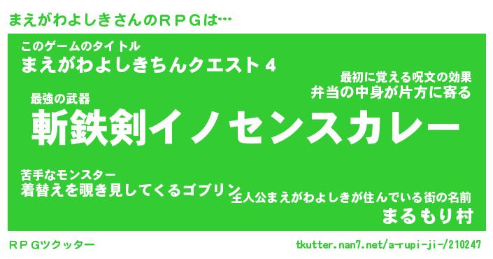 | 男性向けラノベタイトル風あだ名 | 『まえがわよしきの憂鬱』 |