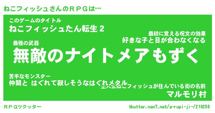 | ツイッター | ねこフィッシュさんのツイッターID『dendenmushi_nyan』 |