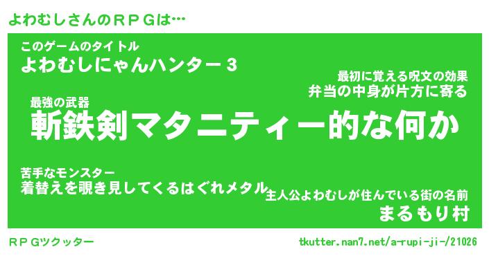 | ファンタジー風あだ名 | 『ヨワフェル』『エターナルヨワムシー』 |