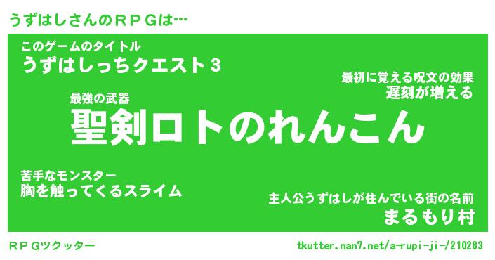| ファンタジー風あだ名 | 『ウズフェル』『エターナルウズハシー』 |