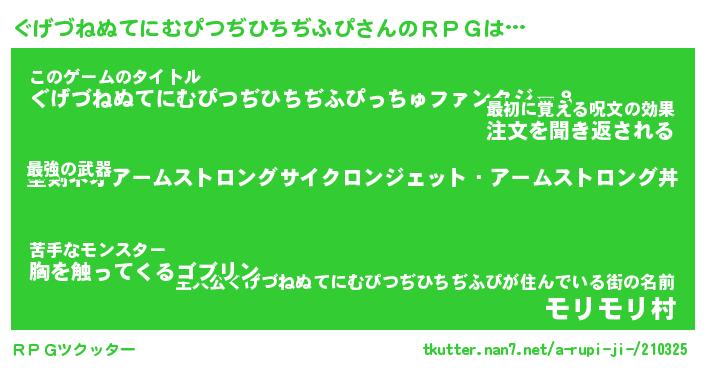 | ツイッター | ぐげづねぬてにむぴつぢひちぢふぴさんのツイッターID『renkon_man』 |