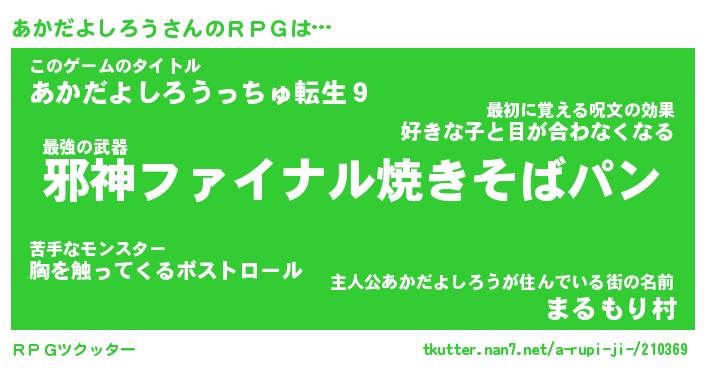 | 伝説のあだ名 | 『封印されし竜騎士あかだよしろう』 |