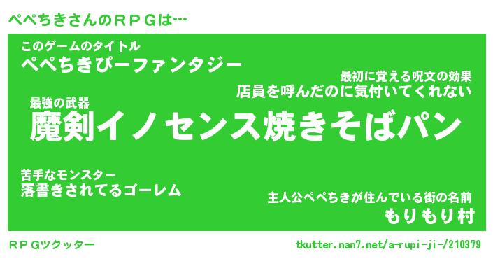 | 男性向けラノベタイトル風あだ名 | 『ぺぺちきの憂鬱』 |