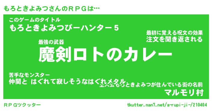 | 伝説のあだ名 | 『伝説の竜騎士もろときよみつ』 |