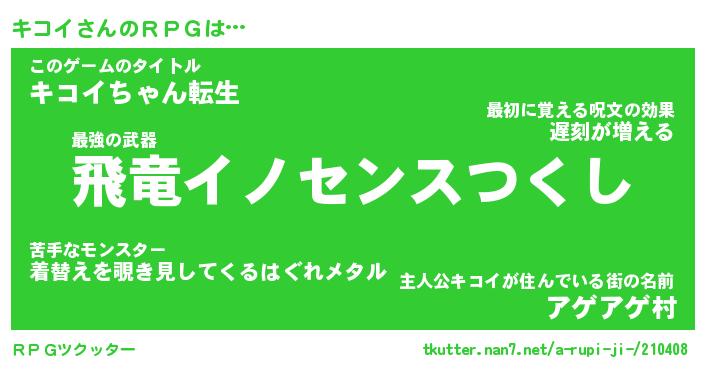 | ファンタジー風あだ名 | 『キコフェル』『エターナルキコイー』 |