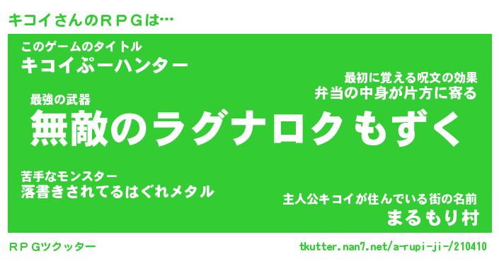 | 男性向けラノベタイトル風あだ名 | 『キコイアートオンライン』 |