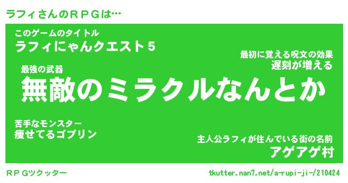 | 男性向けラノベタイトル風あだ名 | 『ラフィアートオンライン』 |