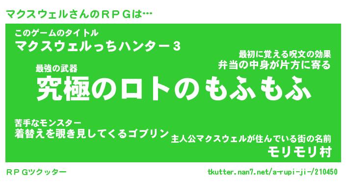 | 男性向けラノベタイトル風あだ名 | 『マクスウェルの憂鬱』 |