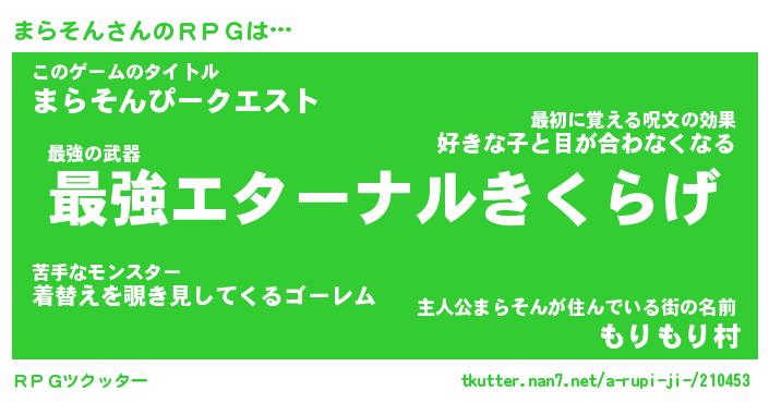 | 料理風あだ名 | 『節約★まらそんと油揚げの玉子丼』 |