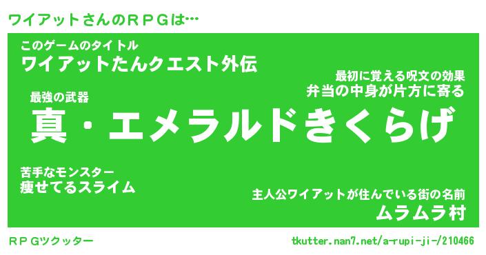 | 胡散臭い通販商品みたいなあだ名 | 『億万長者になれる霊験あらたかなお札…その名も「ワイアット」』 |