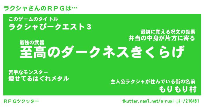 | ファンタジー風あだ名 | 『ラクフェル』『エターナルラクシャー』 |