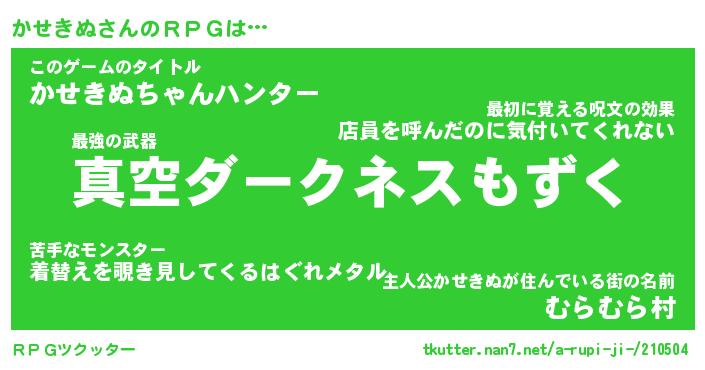 | 男性向けラノベタイトル風あだ名 | 『カセキヌアートオンライン』 |